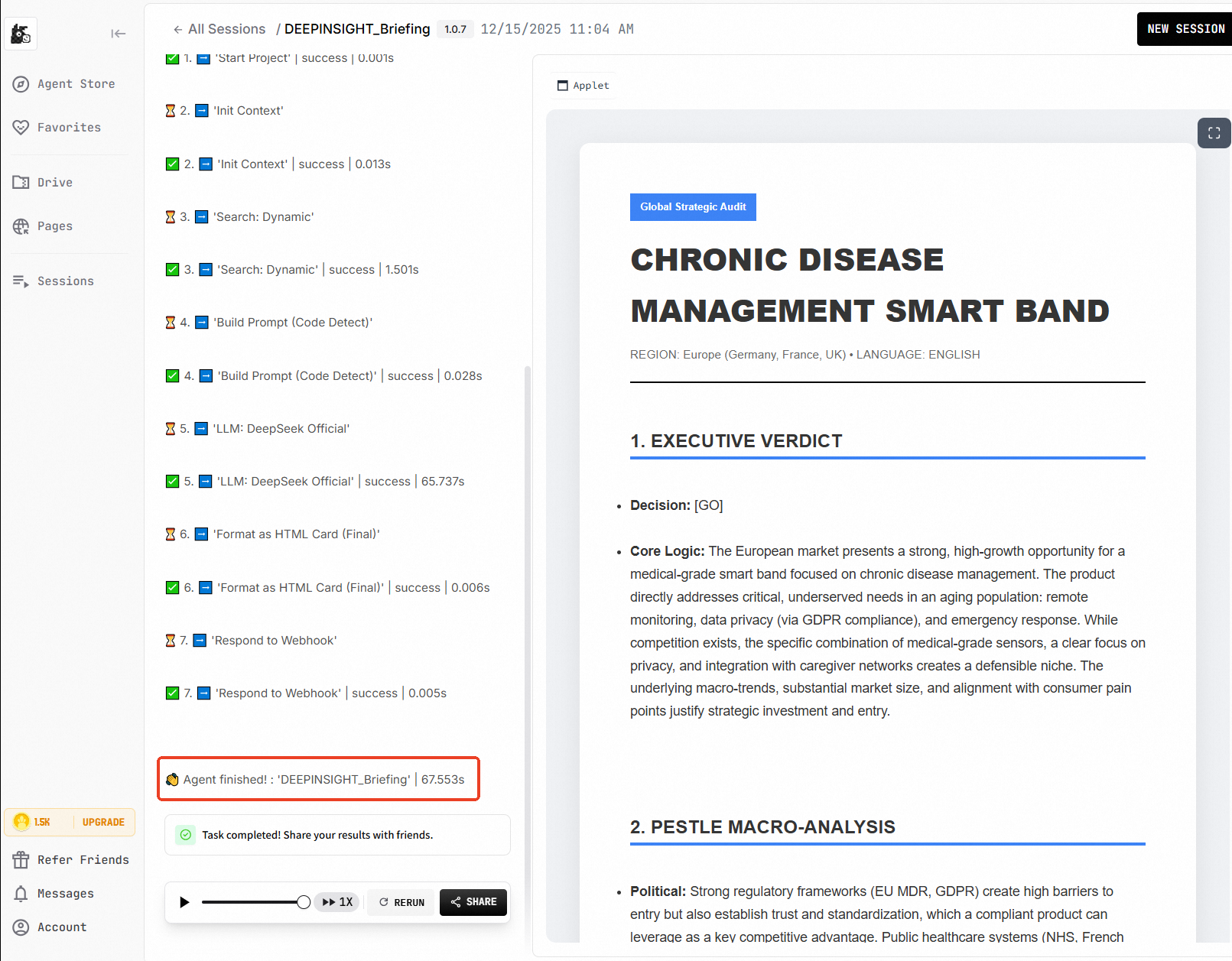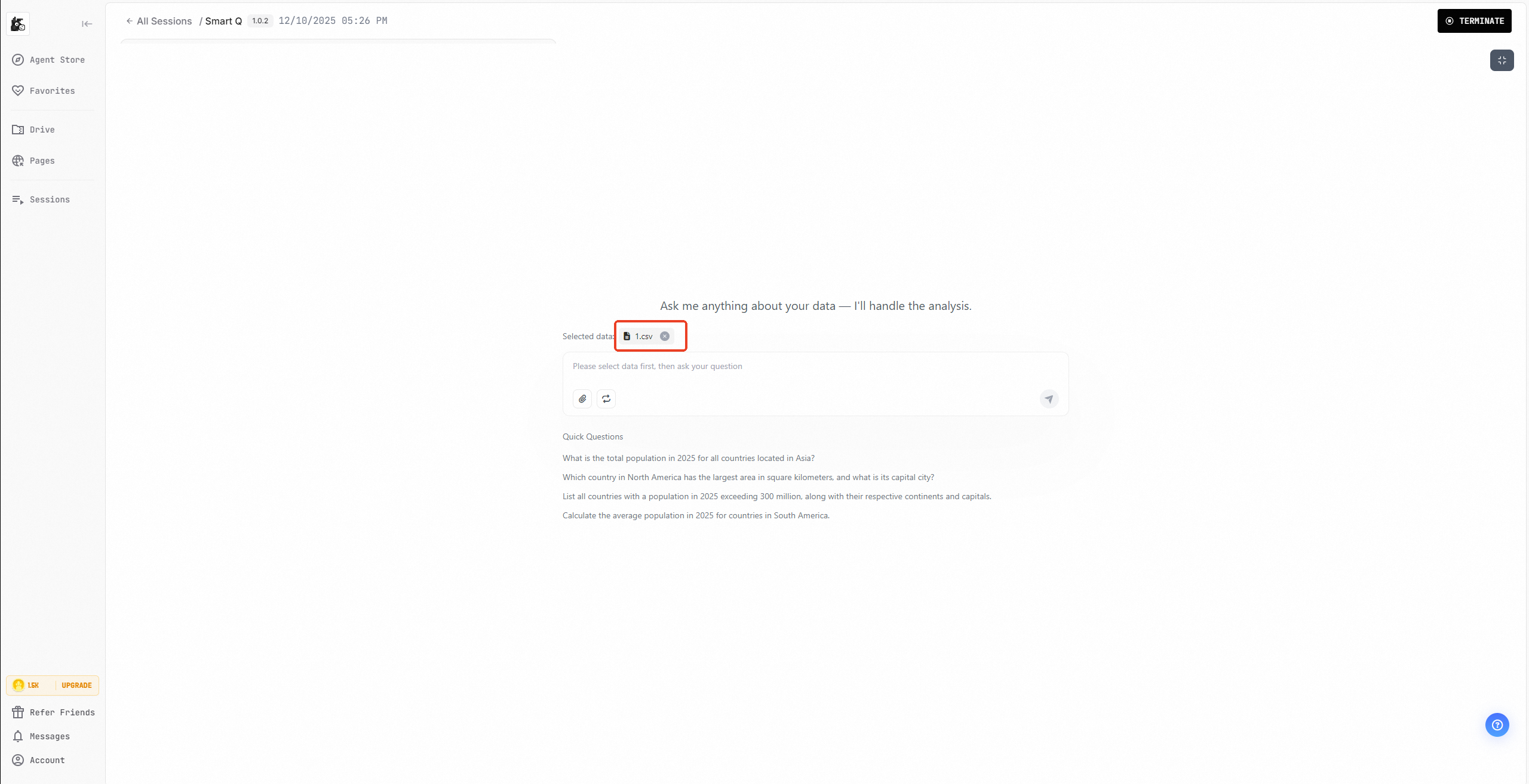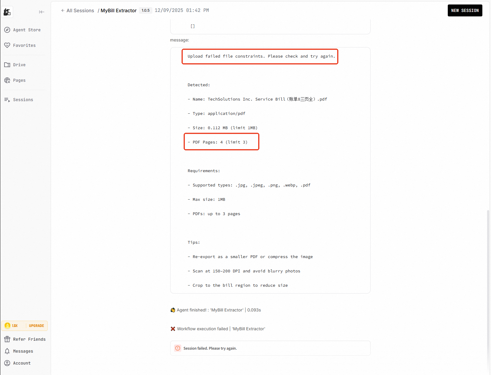 - The agent claims to support file processing (e.g., Excel, Word, and PDF documents), but the input interface does not allow file uploads.