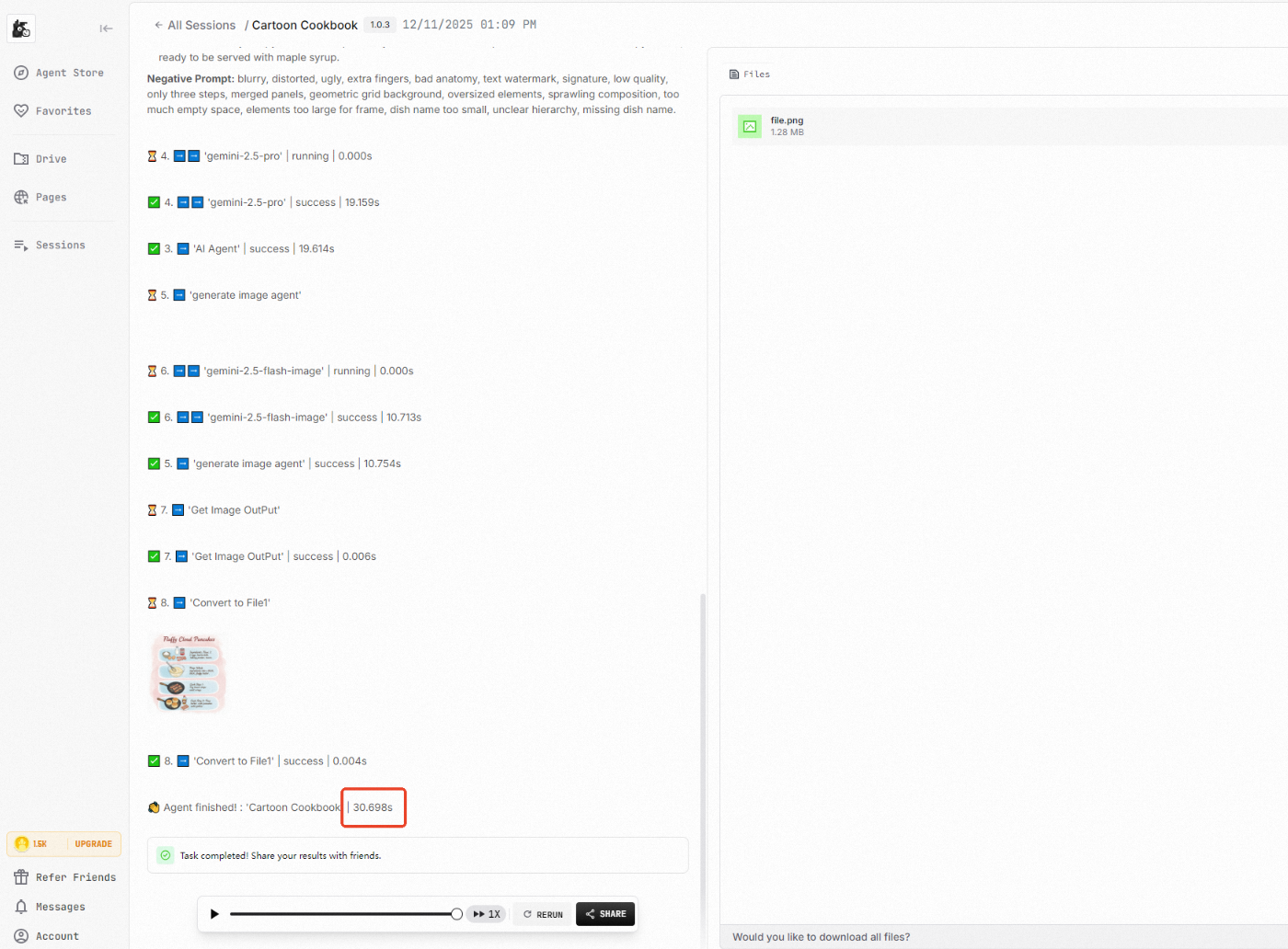 - All generated files (images, videos, PDFs, etc.) must be downloadable