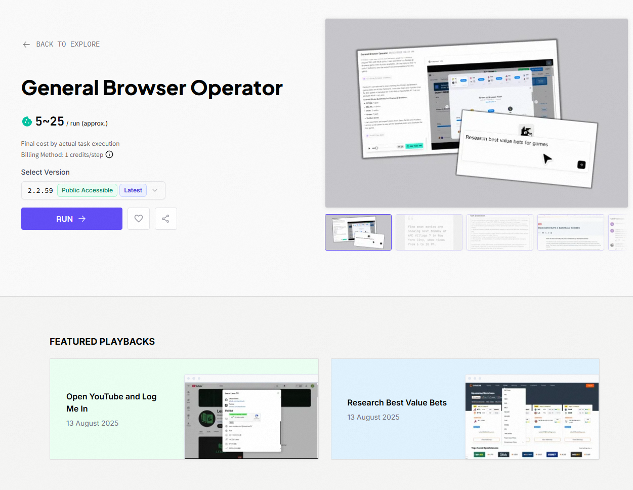 - Output format (e.g., “Generates an 800-word blog post + image suggestions”)
